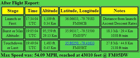 This was a 600g cell with a 900g payload of two video cameras. Maximum recorded height was 95,997 feet. (APRS max 95559ft)