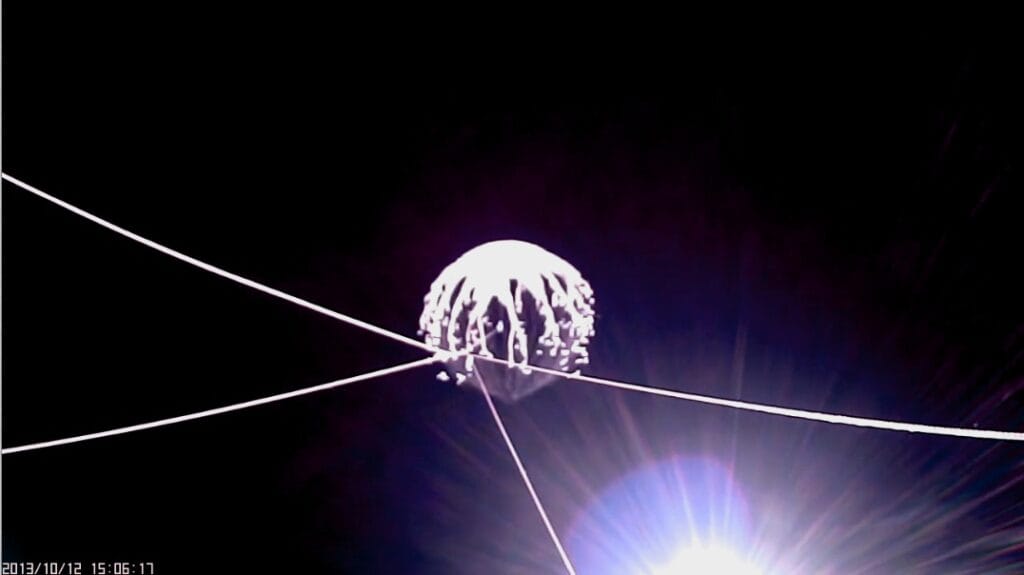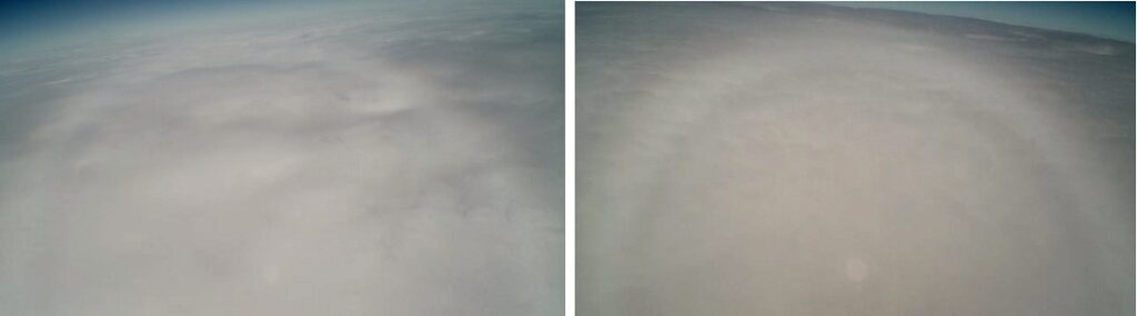 Here are two superimposed images of the balloon from the upward facing camera. Note how much the balloon expands during flight.