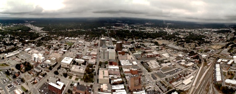 View of downtown Greensboro just after launch