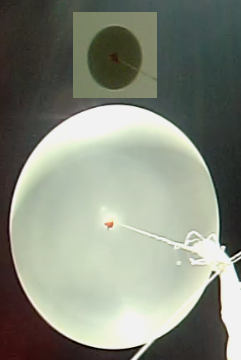 Lucas tried an idea of leaving a large amount of the balloon’s filler neck available to the balloon. That is, we tied off the balloon and secured the payload a good 3-4″ below where we usually wire-tie the balloon. The intention is to give a few more cubic inches of expansion area.