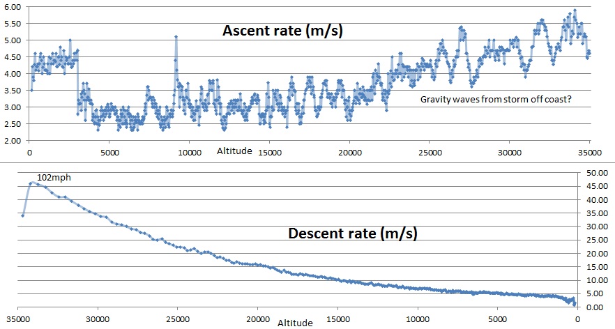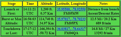 On 9/21/2014, we launched out of Durham using a new payload design by Kory.   We made it to 114888 ft with a 600g balloon.