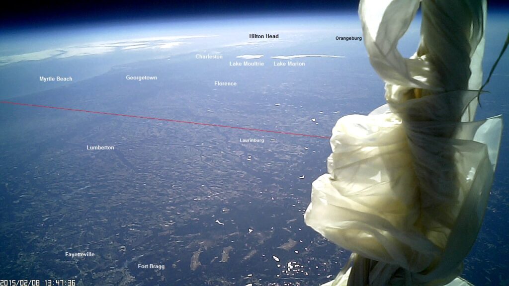 With the parachute tangled, the payload came in fast (impacting at 25mph).  It “landed” in a front yard of a Fuquay-Varina neighborhood.