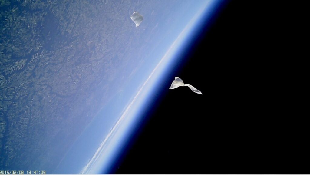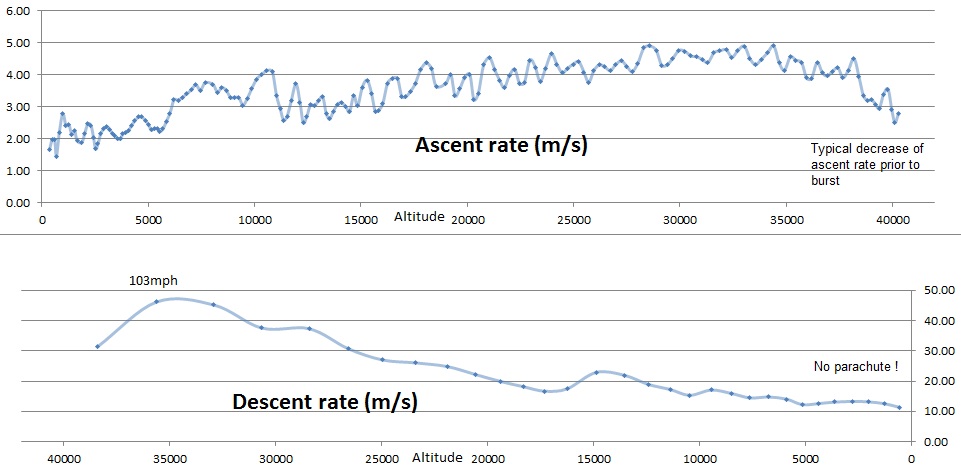 Turbulence in this area (around 35,000ft) threw the payload into the balloon several times as it spun the system end-over-end.  Thankfully there were no sharp points on the payload, but these impacts may have created weak spots on the balloon.