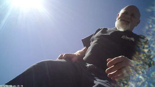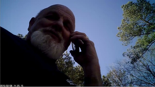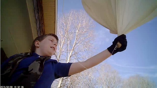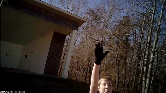The jet stream was rather calm (for winter), so we launched from a park in Yadkinville NC. The park had an amphitheater stage that turned out to be a great place to fill the balloon out of the breeze.  Here is Matthew with his characteristic scarf as viewed by the on-board camera: