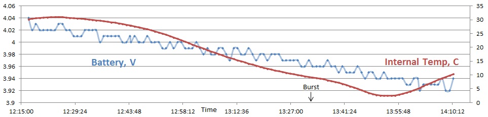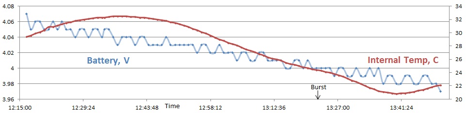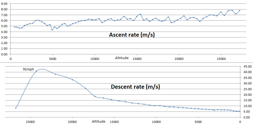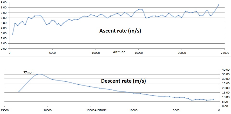 We got lucky measuring the gas fill and both balloons rose at almost the same amounts over the ascent.  They were under 5km apart horizontally, and NSL-37 was only about 1.2km higher when it burst.