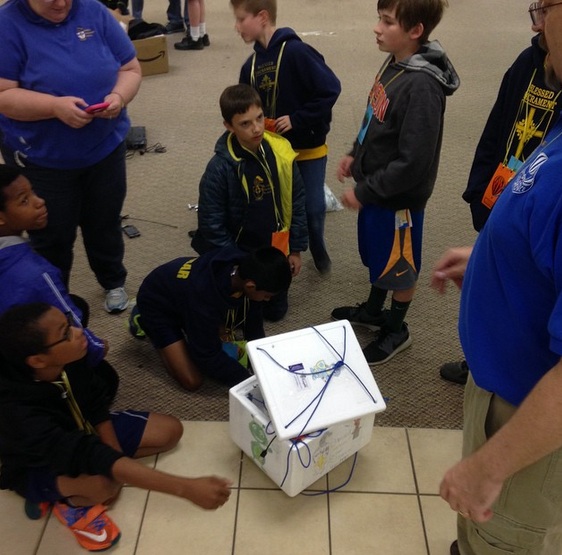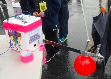 On April 25, 2015 we performed a simultaneous launch of two 600g balloons with student payloads. Blessed Sacrament School had been working with Paul on these flights for several months and the Burlington Mini Maker Faire was excited to host the event.