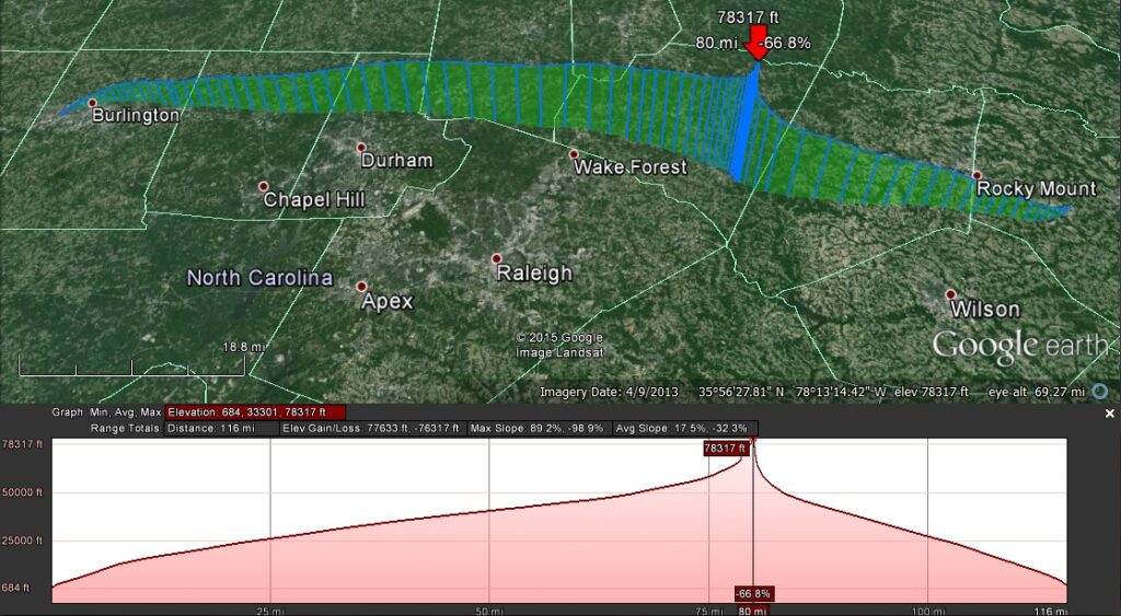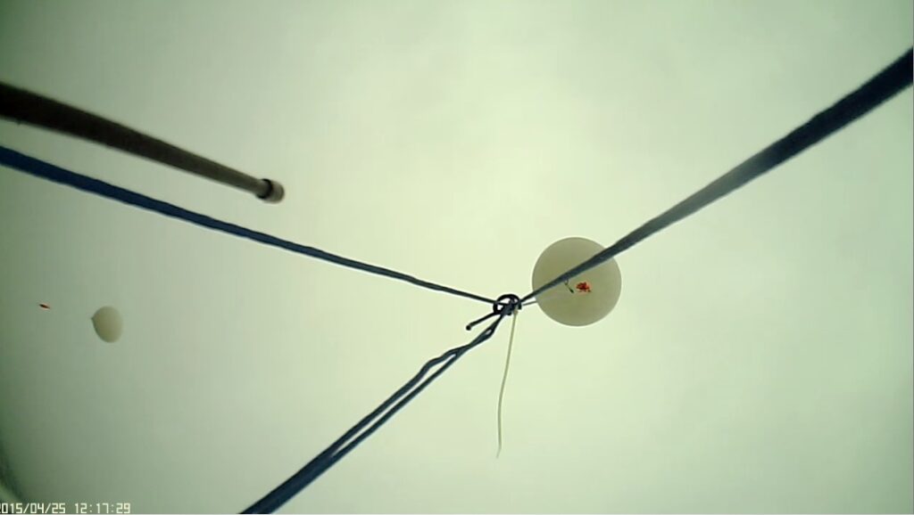 Sadly, the main HD Mobius camera on NSL-38 wasn’t activated before launch.  Also, due to all of NC being very overcast (rain), the earth photos are complete white-outs.  The soaking wet payloads and balloons were soon covered in ice as the rain drops froze.