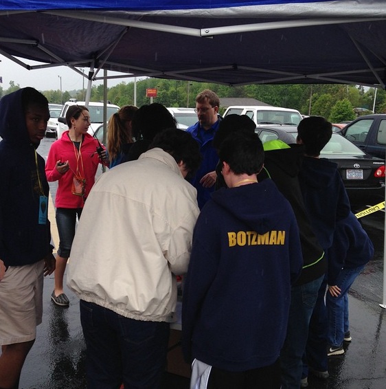 Student teams managed communications, Mission Control, payload, launch, chase, etc.  The students and teachers chose to go with a Hydrogen (renewable resource) public launch, so they set up a safety perimeter and had dedicated safety officers and procedures.  The adults handled the actual Hydrogen fill.  It drizzled through the entire fill and launch.