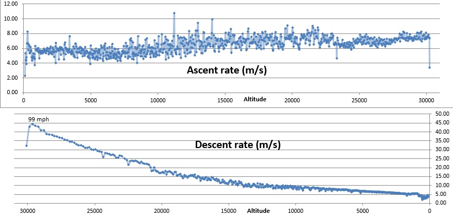 As the payload headed east, its ground speed picked up (70mph!). The payload was dragged sideways at times and had a rather turbulent ascent.