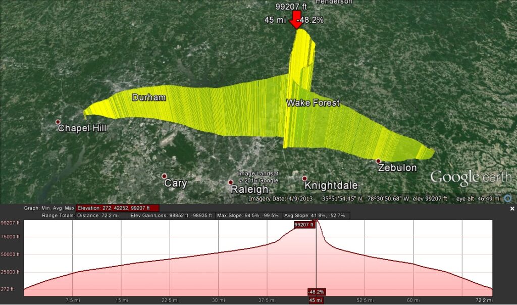 In the last 1000 feet, thankfully, the winds died and the payload descended straight down on to the shoulder of NC-97 about 1 mile into Nash county…