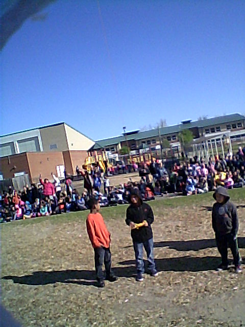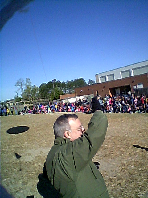 It was a unusually cold morning with frost on the school’s activity field as the team set up for launch. The students filed-out from their homerooms and provided the launch countdown. Several students then released the payload and it took off quickly. The low-level winds were indeed calm, so it shot upwards over the school. The students continued to track it well past 15,000 feet… then it was back to class.