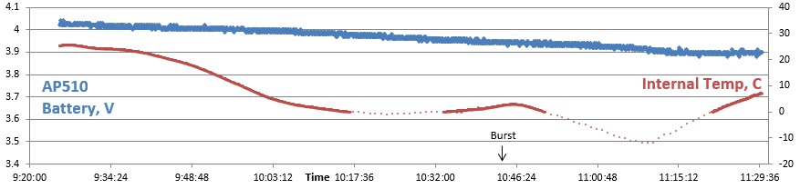 NSL-44 fits a typical HAB flight profile. A lot of turbulence was seen on ascent. By minimizing dead air space inside the payload, it was kept warm for the trip.
