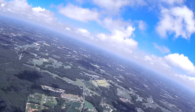 Interestingly, as it went above 75,000ft it got quiet. All it heard was a ham in his van headed from Oak Island, NC towards his home in New Jersey. I copied his traffic even when no repeater was able to pick him up (ie. not on APRS.FI). The cheap antenna was on the top of the box, so perhaps the box shielded other signals below. I’ll have to contact this ham to see what he has for gear on his van (he apparently runs 50W at home, so I suspect it is something powerful).
