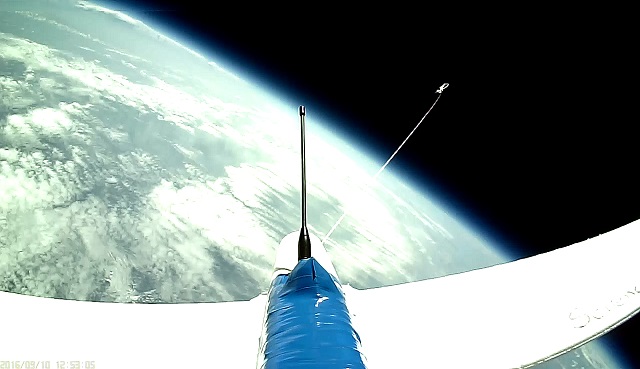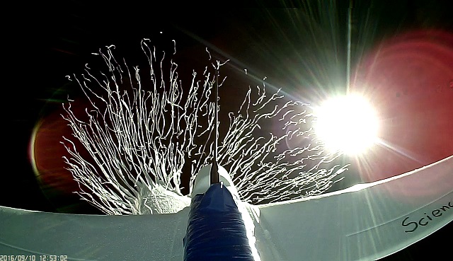 Ascent from the vertical stabilizer — Balloon expanding over 70 minutes