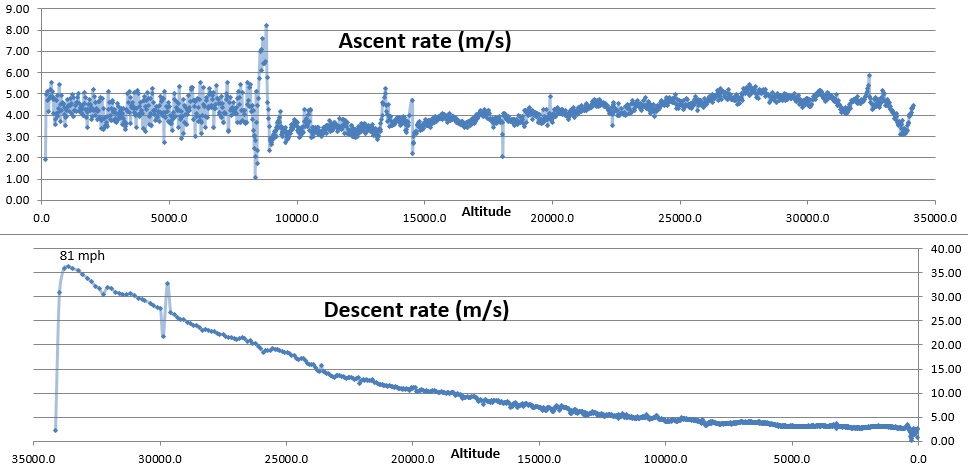 The small 350g balloon was predicted to burst before 27km, but for some strange reason it held out all the way to 34.1407km (112010 feet) !!