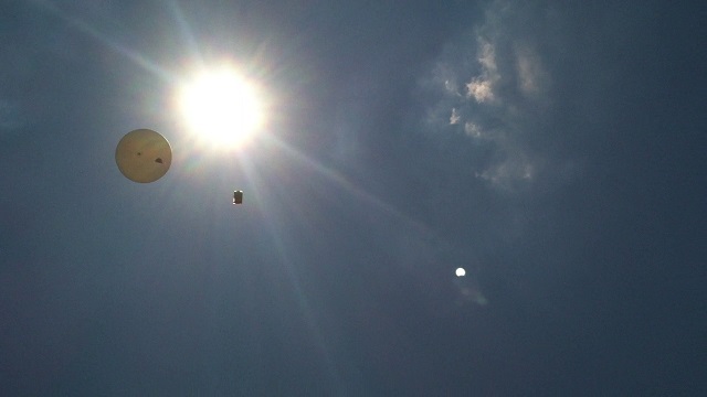 The balloon was visible for quite a few minutes and wasn’t apparently drifting far. However, where on an ordinary day we may have tried to see how far we could follow it by eye, we instead returned to “eclipse watching mode” with a few dozen of our new closest friends. The experience itself was somehow beyond words, and we were looking forward to altitude pictures.