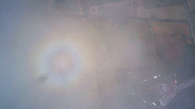 A “glory” seen looking down while ascending through the single small cloud overhead