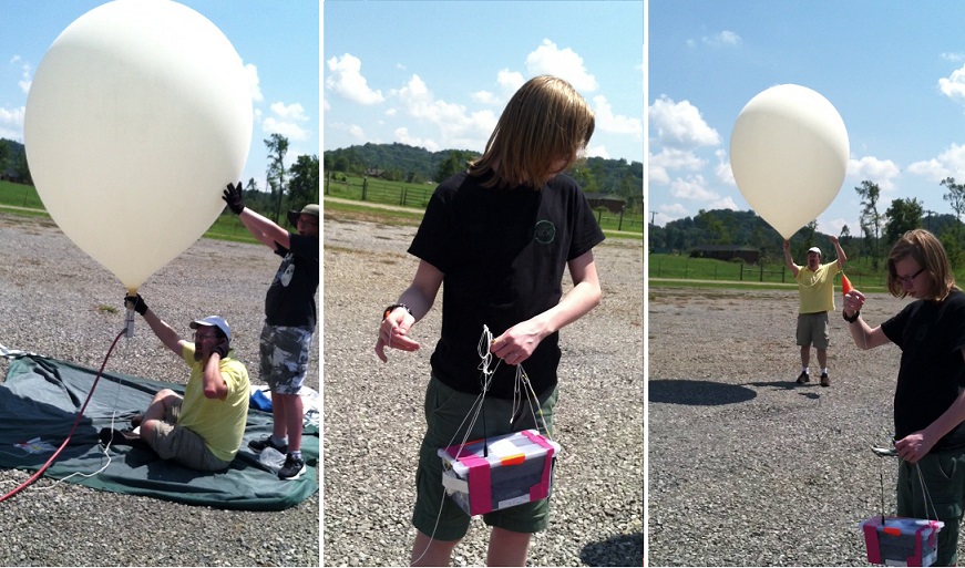 Due to some question about tank pressurization and flight profile, balloon up was planned for just before 2PM. It would not be near its apogee for burst but would still have a good altitude perspective. Launch team consisted of club members Christopher, Justin, Paul, and Laurel Ann. Due to minor delays was released approximately 2:06 PM.