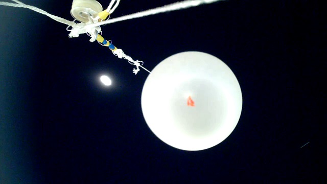 NSL-59 had a little less “measurement” equipment. Created from a generic lock-and-lock box with black foam padding, Rocketman chute, and all strung under a 600g Hwoyee cell with a 110 tank of helium. Payload weight was 602 grams. Contents: