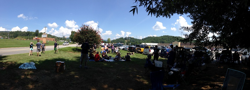 The launch site was chosen as the grassy median outside a Walmart in Murphy, NC. Murphy’s weather conditions seemed best in a game-day call made before 7AM, and they panned out well. The Walmart was a large open area with plenty of horizon, and unlike several other places in extreme southwest NC and northeast GA, they weren’t charging $40 per vehicle for parking. We were far from the only ones with this idea.