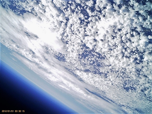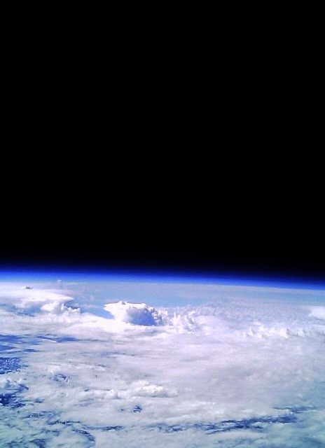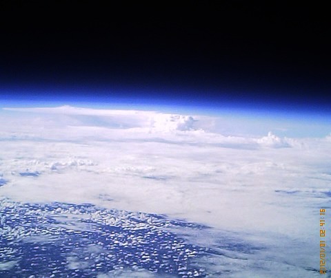 As the payload descended to the cloud tops, the remaining working camera started to be saturated with the high amount of bright white light in the field of view. It’s simple exposure levels just couldn’t go dark enough.