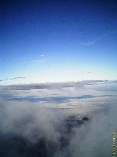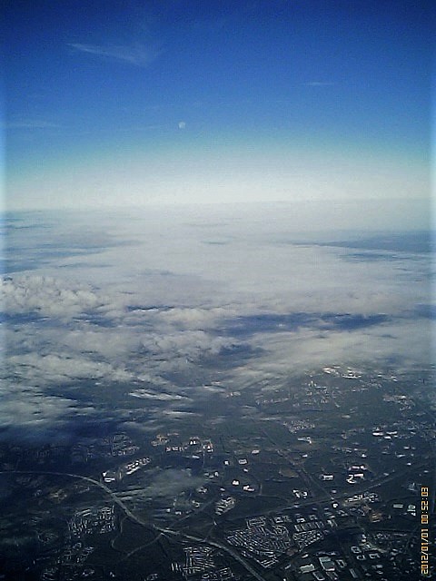 Ascent images from the 808 #16 camera looking through the bottom of the nose-up plane — note the setting moon.