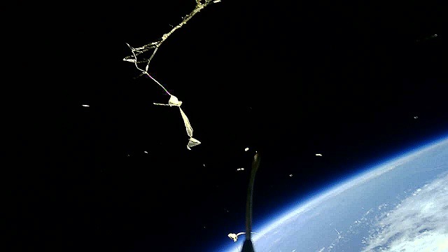 At burst, the huge balloon shredded in about three 1/30sec video frames!