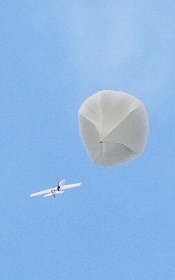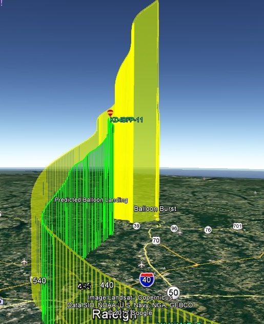 This was scheduled as a five hour flight, so the chase crew had plenty of time to get ready and head out to the landing area. Getting actual and projected flight plans that agree can be challenging on these long missions. The gas fill and measurement have tighter tolerances. A difference in a liter of lift gas can dramatically change the low ascent rate and make quite a change in the final altitude and path. Even an extra zip-tie can make a difference. Add to that the challenge in modeling the descent of a glider that could descend at 1m/s or 8m/s depending upon the trim and balance.