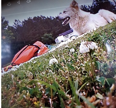 Later review of the video, showed that the pup had witnessed the landing from a neighbor’s yard and had cautiously wondered over to investigate. Good boy!