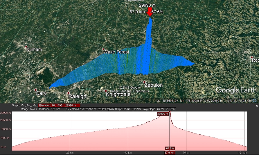 The flight track was predicted to take it east-northeast towards Rocky Mount, NC. After launch, the chase crew Tim, Paul L., students, and teacher departed the school and headed for the projected landing area to the east.