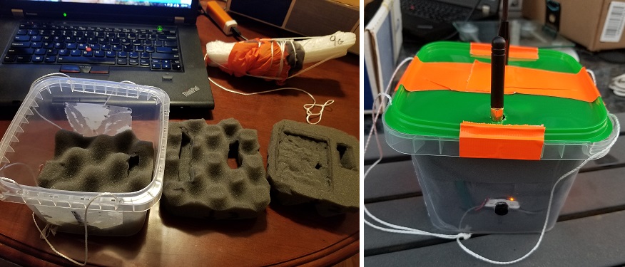 With no tracking and a deadline, Paul scrambled to disassemble the payload, move antennas, and add more shielding. He re-positioned the AP510, which accidentally knocked its microSD card loose. It also placed the top of the AP510 up against the top lid of the payload. This would become an issue later in the flight. Finally, the trackers started to behave and the payload was secured for flight.