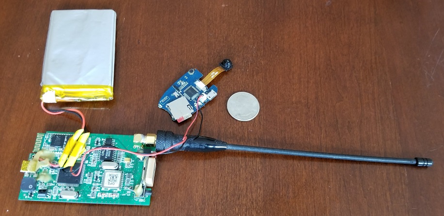 Also new aboard; a RunCam Night Eagle 2 Pro low lux camera. Intended for the nighttime drone flyers, this camera sports a 0.00001 lux (@1.2F), low light CMOS sensor. It only produces 800×600 black-and-white video. Paul used it for astrophotography, but added a small RunCam mini DVR board to enable recording of the video. Both camera and DVR came to only 20g.