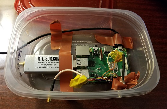 All of these devices, packed within a plastic box, had two $6 mag-mount antennas added. A 5v USB wall charger powered it, but it could also be run using a POE adapter.