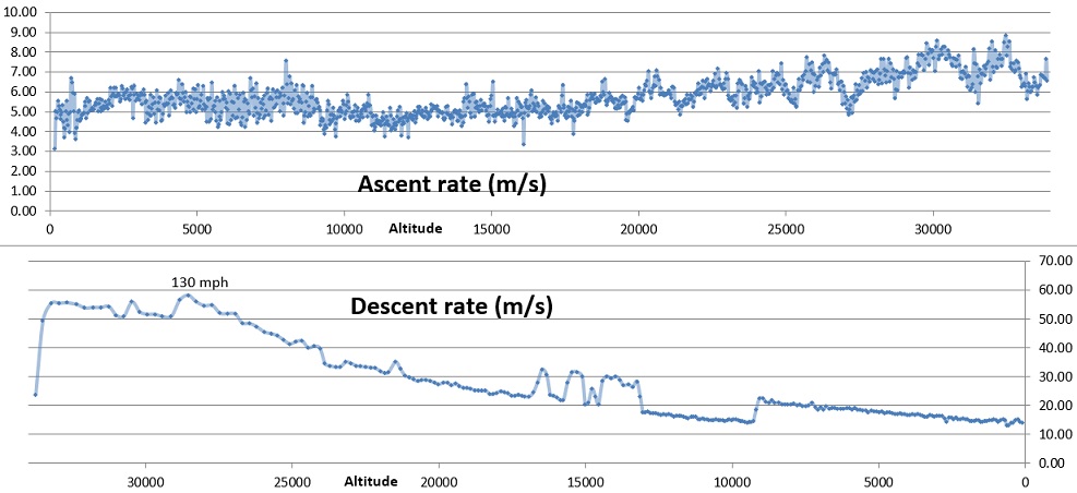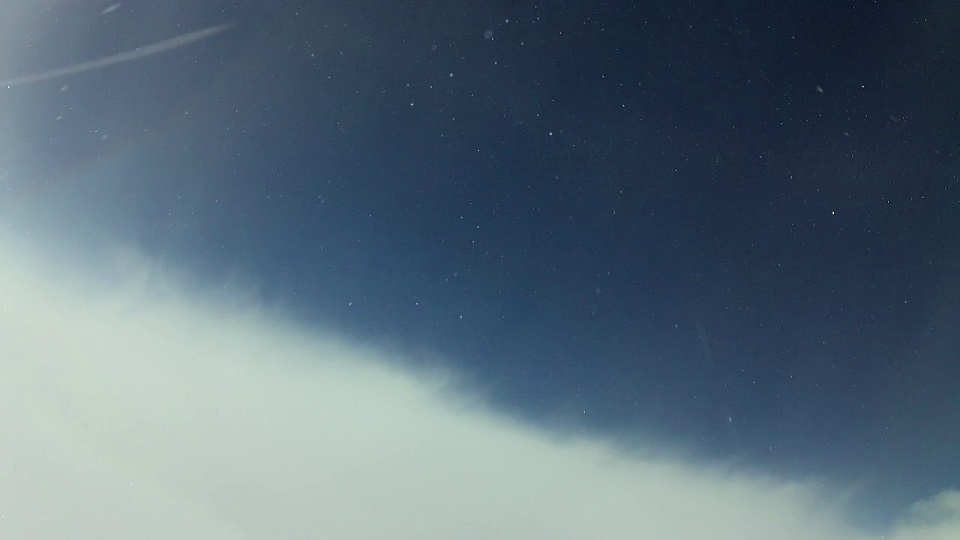 As the flight continued, it reached 8km and a high cloud layer comprised of ice. The on-board cameras recorded what looked like a falling snowstorm as they passed up through the stationary ice particles.