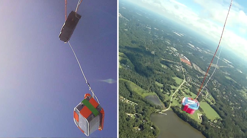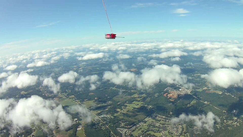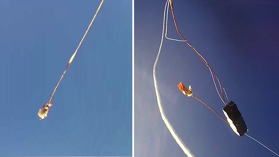 Paul monitored telemetry while Aurora drove north to intercept. They realized to their dismay that the flight wasn’t slowing down like it was intended to while under parachute! As it fell though, it offered video images seldom seen on flights: the view of one payload taken by another.