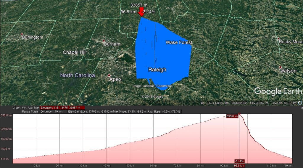 The payloads continued to scream in at 15m/s. The predicted landing zone soon updated to show Lake Benson. The chase crew noted “at least that would be safer than landing on someone.” Paul had packed waders, but he might have to swim.