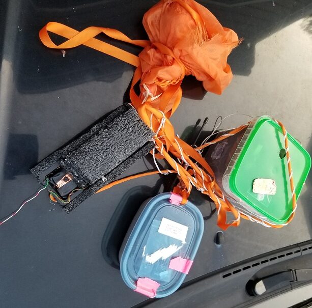 The landing projections for the trackers all agreed that the payload would land nearby — at first. Unbeknownst to the chase crew, the parachute had become tangled in the balloon remains shortly after burst.