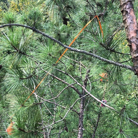 Chris met back up with Aurora and Paul and looked at the situation. It was a loooong way up, and there was no clear opening to make a bow and arrow shot. The payload was doomed to stay up there until it rotted and fell.