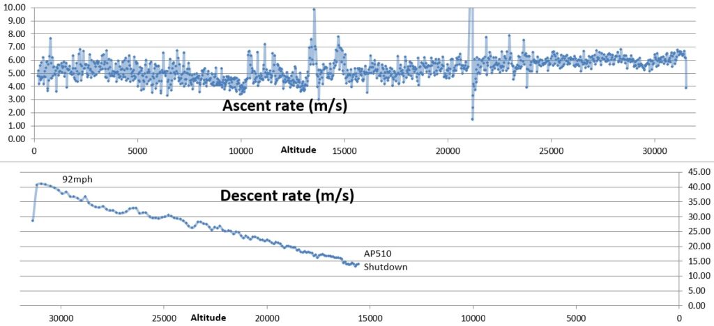 Meanwhile, the AP510 recorded a maximum altitude of 31,517.6m (103,404 feet) on its SD card.