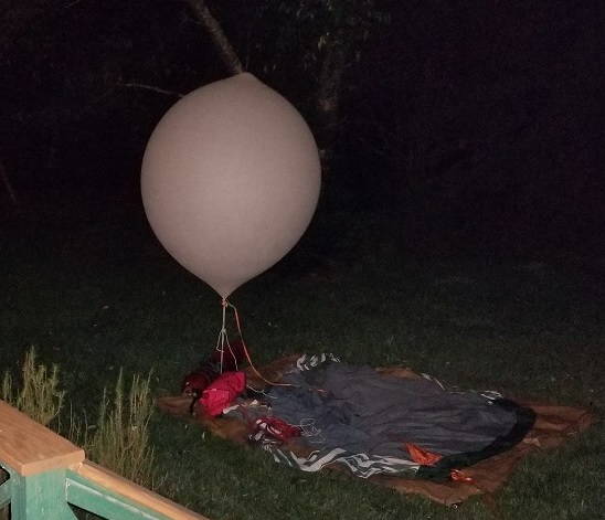 At 3:30am (yawn), with the SpaceX launch still “go”, a 600g cell was filled with about 1300g of neck lift.  The balloon was filled prior to payload activation to save as much battery power as possible.  It will be a cold flight without solar heating and this will degrade LiPo battery performance.