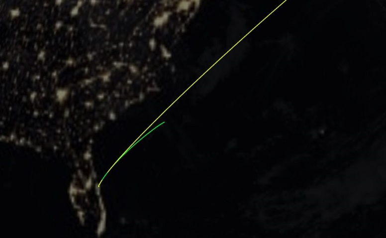 Flight path of SpaceX Starlink 8 flight courtesy of FlightClub. io