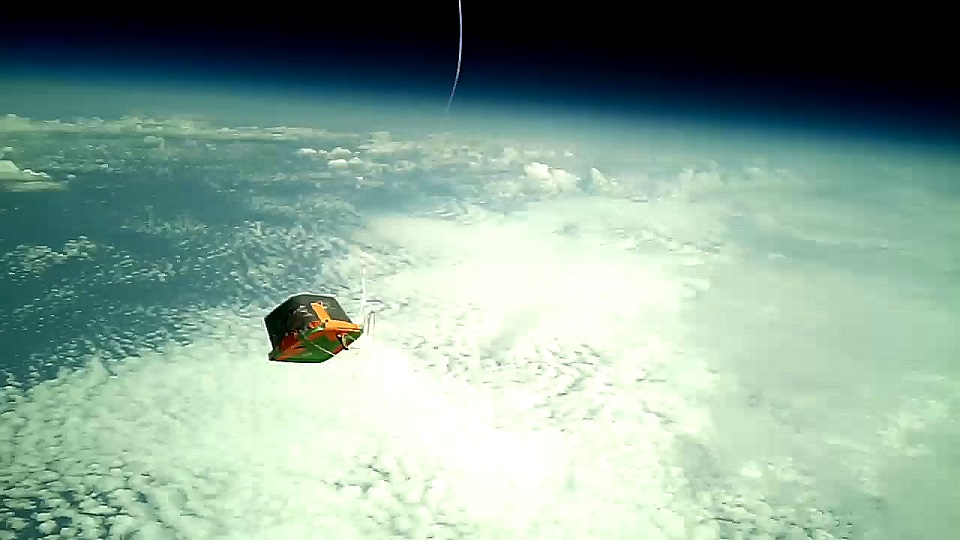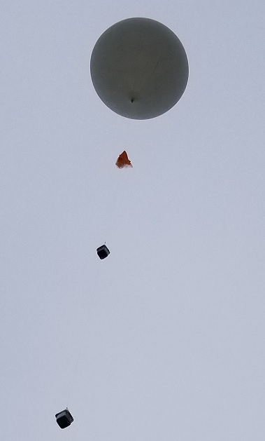 Launch showing balloon, chute, and two small boxes