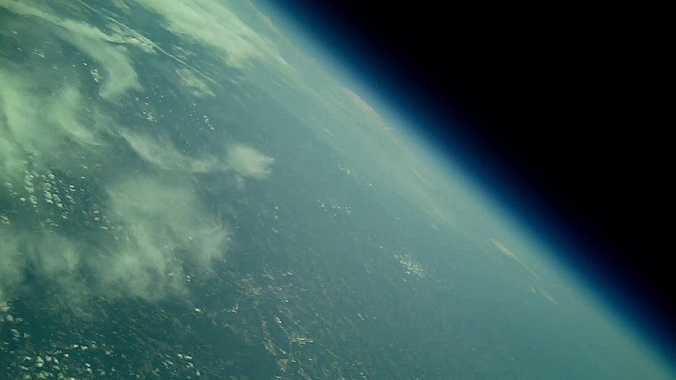Tim holding the balloon as seen from the 808 camera on Chris’ payload.