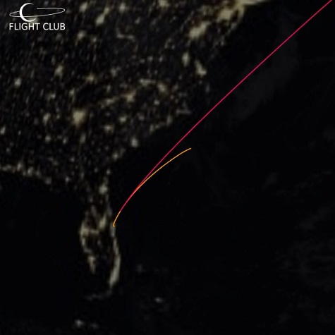 Predicted flight paths of Antares NG-14 and SpaceX GPS-3 SV04 as modeled on FlightClub.io