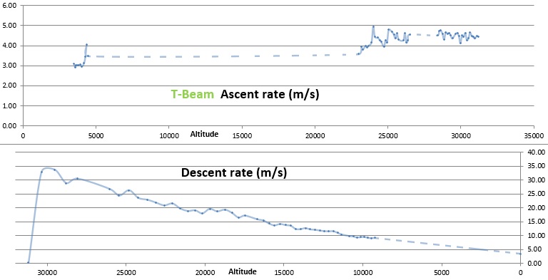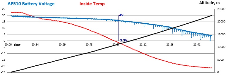 As the flight slowly ascended, telemetry showed that the old AP510 battery was running out of power. The LiPo had seen several dozen eventful flights and could no longer handle the cold. As the voltage dropped, the unit shut down. This left only the LoRa T-Beam tracker, which recorded burst at 31,281m.