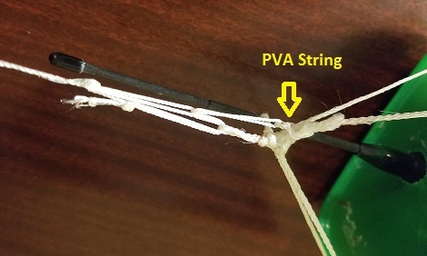 With dry weather forecast for the evening, the parachute line attached to the payload with PVA string. This could allow the payload to fall from a tree after a rain.