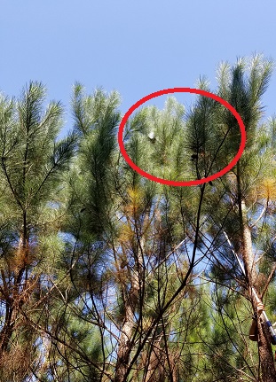 The following week, he headed back out to the site and met with manager of the farm. After some bushwhacking through briars, the payload was located at the top of a young (7m) pine tree.