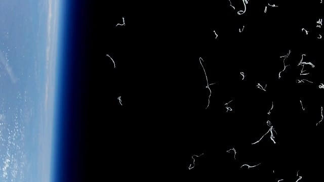 CAP member inspecting the experiments. Astonished Sarah as seen from the still working onboard camera.
