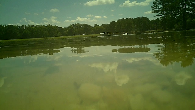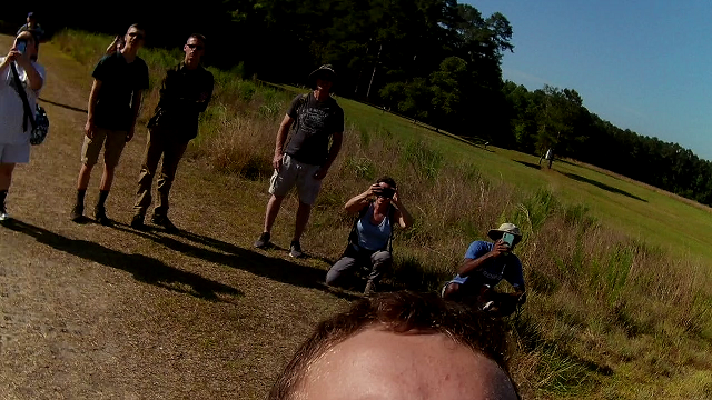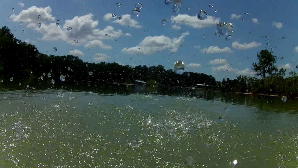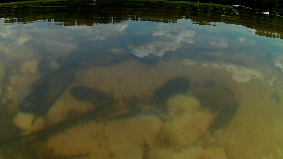 The 808 camera shows the astonished chase crew on the side of the pond in the distance.