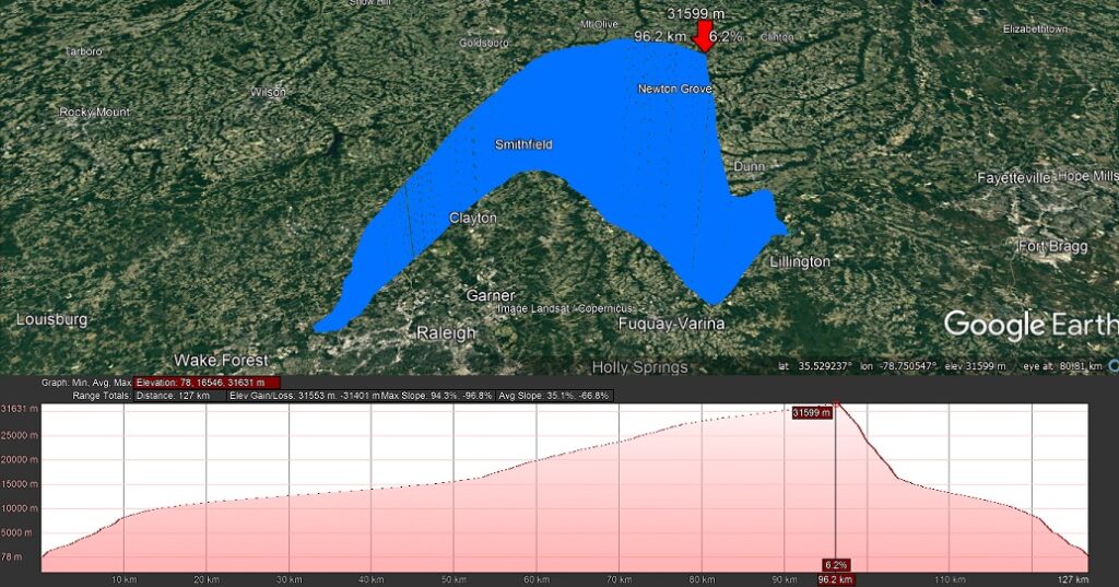 One LoRa receiver travelled with the chase crew, while another stayed at a fixed location in downtown Raleigh. Received LoRa information from the T-beam tracker plotted on the live Habhub map — This included current location AND the tracker’s predicted landing site.
